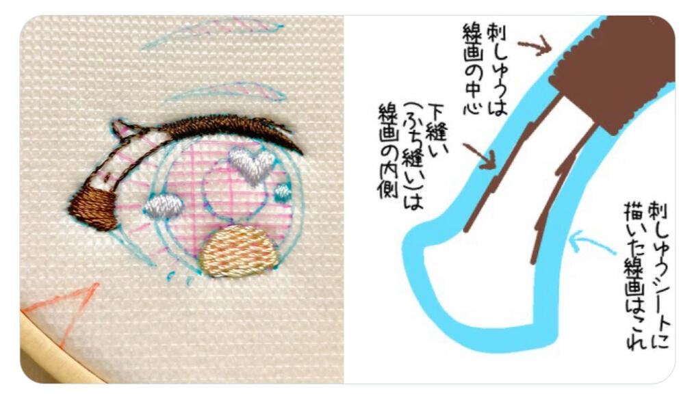 Trace your head pattern onto your embroidery stabilizer, making sure the piece is large enough to fit over your embroidery hoop. Place everything onto the hoop (fabric and stabilizer on top), using a basting stitch around the face to keep it stable, and start embroidering. Use PiyoPicco's video as reference.